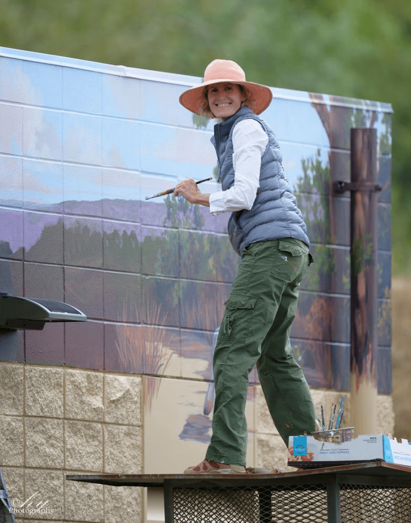 I had this exchange with a passer by while painting a wrap-around mural on the pump station for River Park Parkway for the city of San Jose. The park serves as a flood catchment, a public park and trail system, and home to a growing number of bird species and riparian plants, many of which I feature in the mural.